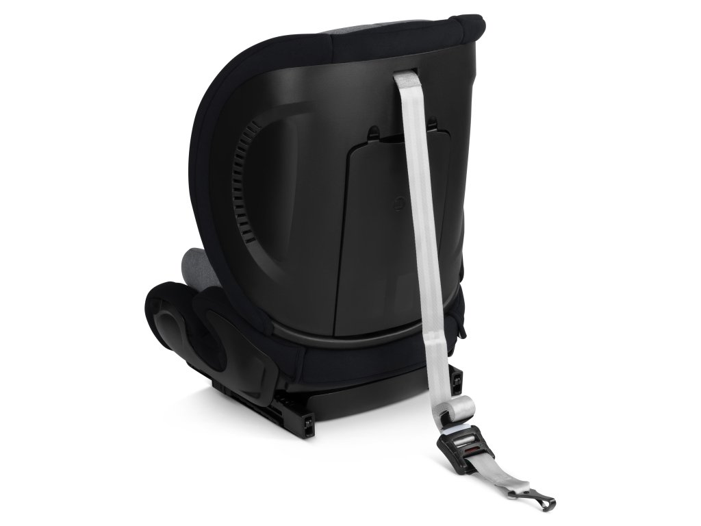 Uchycení horního popruhu – popruh natažený přes opěradlo zadního sedadla a ukotvený v držáku – navíc poskytuje ještě větší bezpečnost. U obou upevňovacích systémů barevné displeje ukazují, zda je vše správně umístěno. Červená znamená, že je potřeba něco upravit. Zelená znamená, že je vše v pořádku.