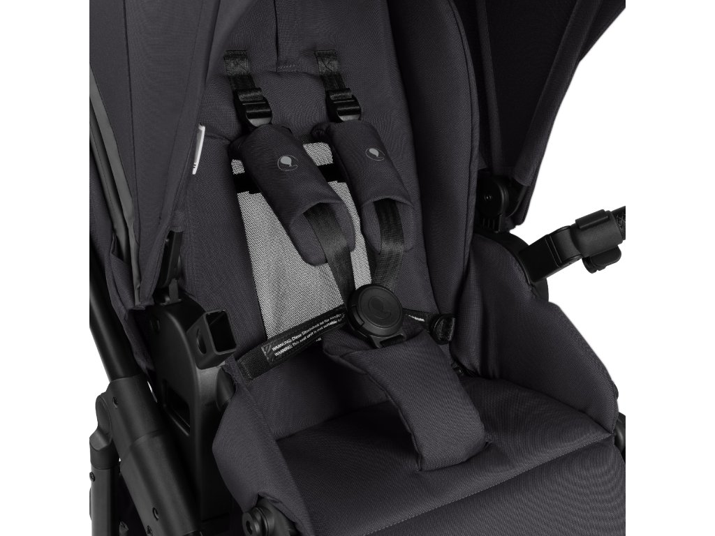 Kočárek je promyšlený i z hlediska manipulace. Ergonomické výškově nastavitelnou rukojeť, můžete snadno nastavit tak, aby vyhovovala vaší výšce. Chytrý pětibodový systém bezpečnostních pásů HappyBelt® se snadno nastavuje díky praktickému magnetickému zapínání a plynulému nastavení pásů, přístupnému zepředu.