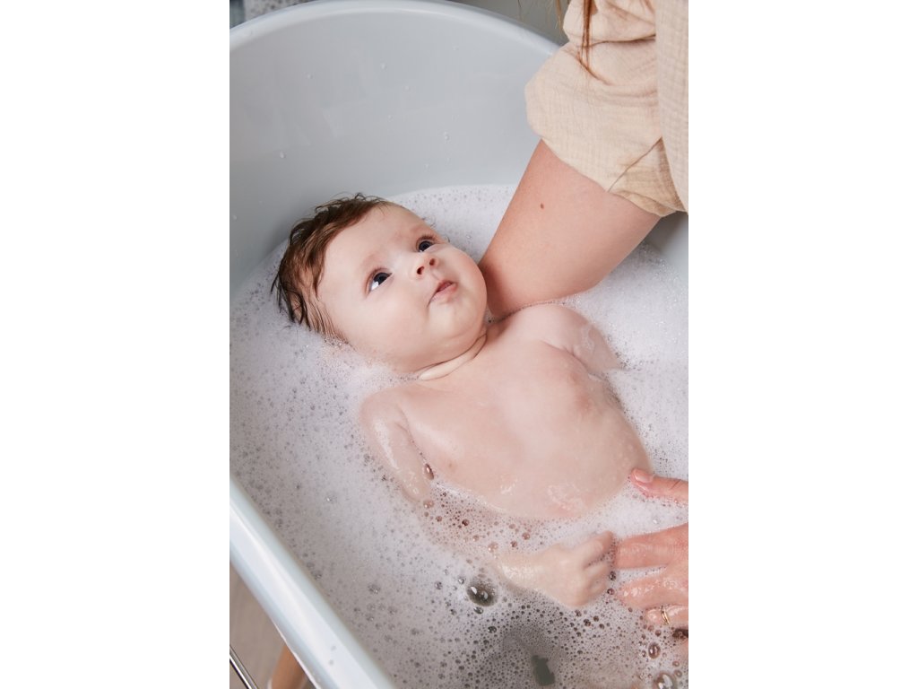 Velmi stabilní vanový stojan Sense má nohy vyrobené z lakovaného bukového dřeva s certifikací FSC. To dodává stojanu teplý moderní vzhled. Je vybaven praktickými pomůckami; vpředu je připevněn držák na ručníky. Prostorná plastová polička poskytuje dostatek místa například pro šampon, žínku, vodní hračky nebo koupací gel. To znamená, že máte po ruce všechny potřebné věci, abyste si s malým mohli v klidu koupání užít. Inovativní systém upevnění zajišťuje, že vanu lze snadno připevnit ke stojanu a stejně snadno sejmout. Po kliknutí můžete své miminko nerušeně a bezpečně koupat.