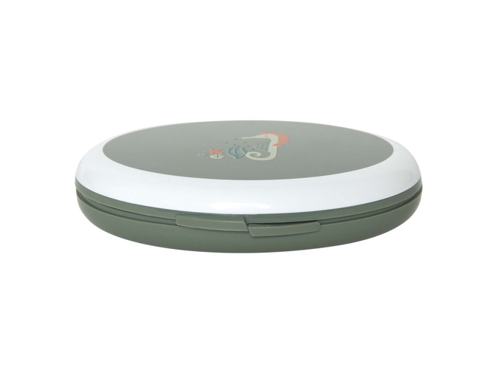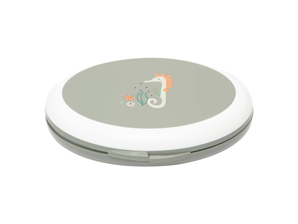 Obsahuje nůžky se zakulacenými konci, pilníček na nehty a také kleštičky na nehty. Vše je vyrobeno z nerezavějící ušlechtilé oceli. Krabička s výrazným motivem na víčku chrání před prachem a pomáhá udržovat manikúru v čistotě. Ale i přesto před každým použitím jednotlivé nástroje pečlivě očistěte a u novorozenců i desinfikujte roztokem lihu.