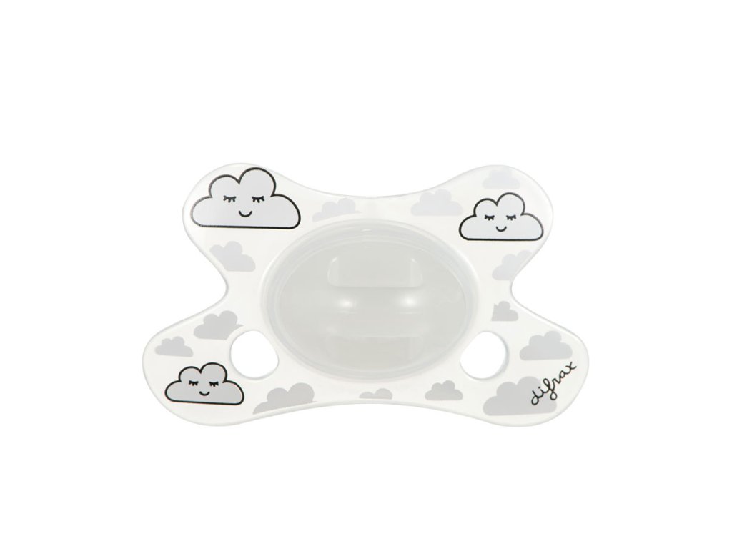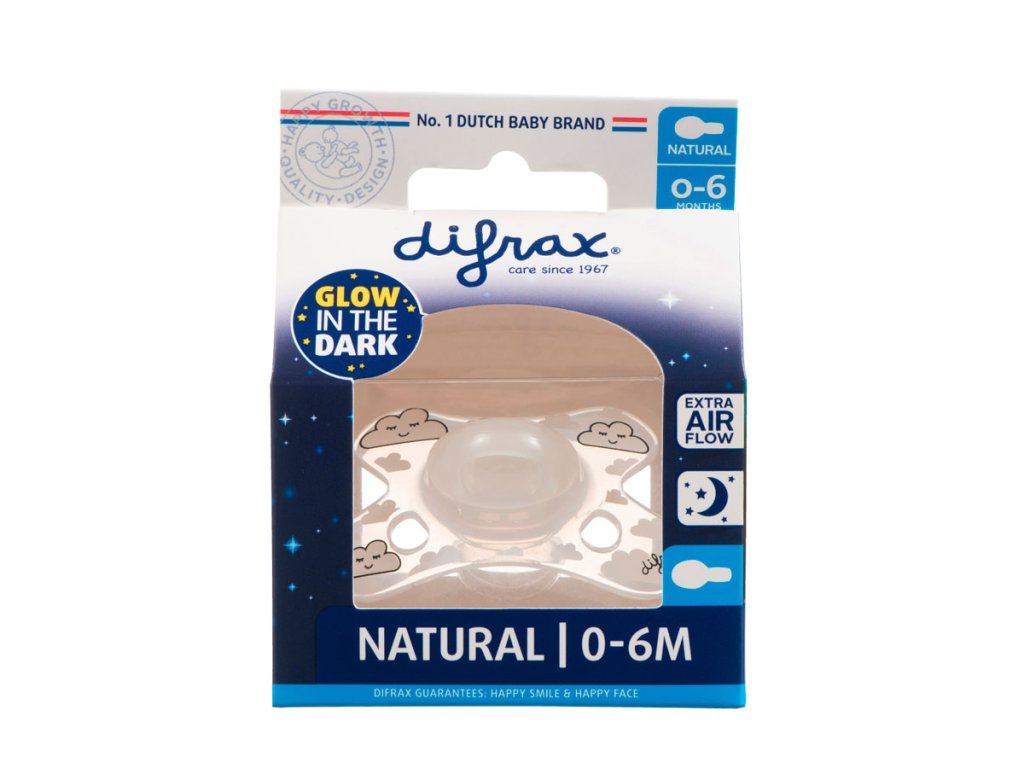 Tento unikátní dudlík má kotouč ve tvaru motýla, který zajistí, že dudlík dokonale padne tvaru obličeje vašeho miminka. Vykrojení kotouče umožňuje miminku volné dýchání nosem. Dva přídavné vzdušné otvory zabezpečují dostatečný průchod vzduchu, čímž nedochází k podrážení pokožky miminka. Dudlík dodává miminku pocit pohodlí, útěchy a uvolnění. Difrax dudlíky jsou navíc dostupné v několika populárních provedeních a v různých barvách. Difrax doporučuje nahrazovat dudlík každých 6 týdnů. Zárověň je doporučeno denně stav dudlíku kontrolovat pevným zatáhnutím za savičku, aby bylo zaručeno, že je dudlík neporušen.