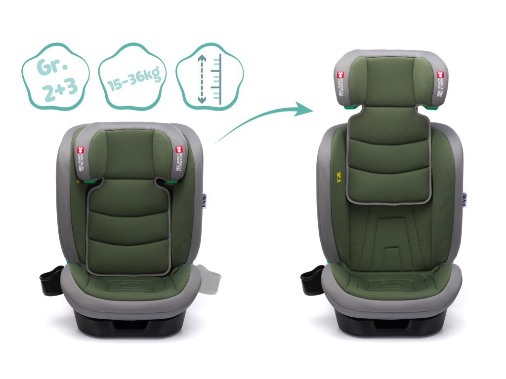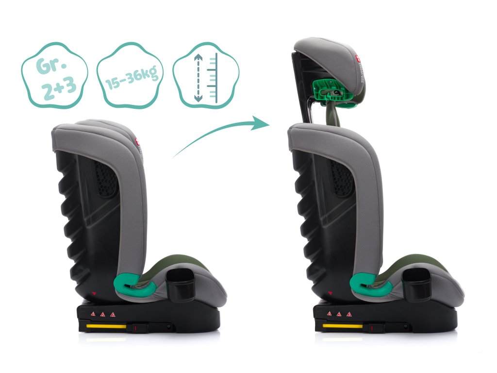 Autosedačka s novým standardem Isofix i-size, skupina 2+3. Pro děti 100 cm - 150 cm (15 - 36 kg), variabilní ISOFIX, zádová opěrka nastavitelná do 3 poloh a nastavitelná opěrka hlavy. Ochrana proti bočnímu nárazu. K dispozici držák nápojů.