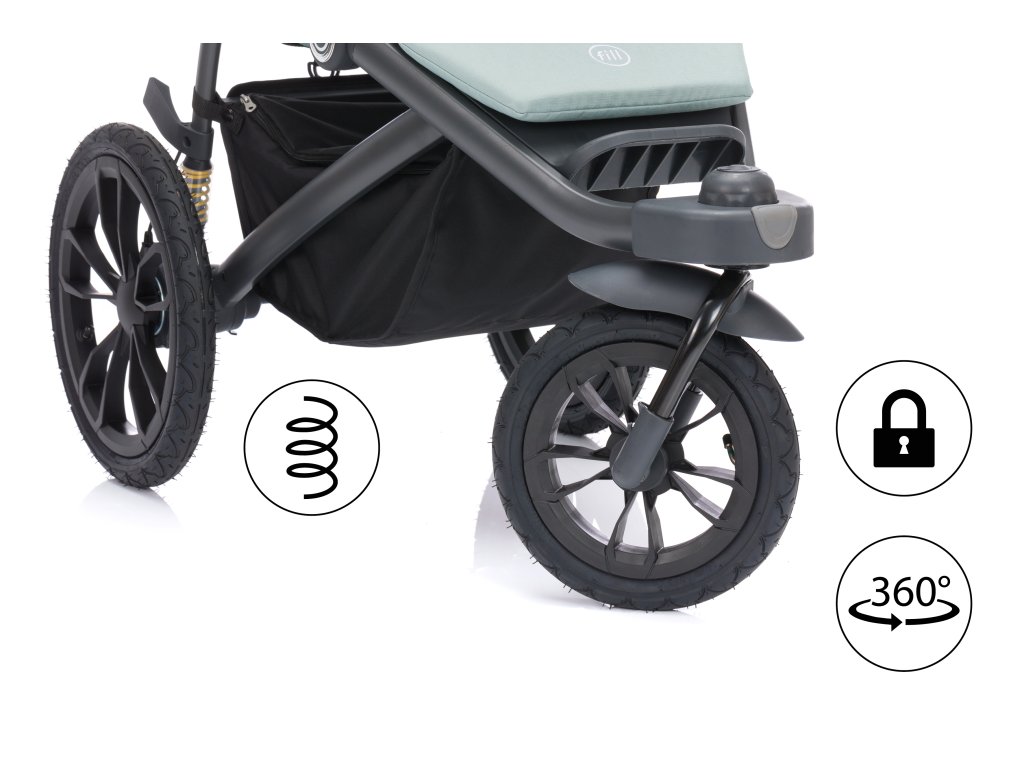 Přední kola s možností aretace o průměru 30 cm a velká zadní kola o průměru 39 cm zajišťují stabilní a bezpečnou jízdu na různých površích. Díky přídavné nožní brzdě můžete jogger kdykoli bezpečně zaparkovat. Navzdory rozsáhlé výbavě lze kočárek Jogger Run složit do kompaktních rozměrů 49 x 37 x 78,5 cm, takže je ideální pro skladování a přepravu.
