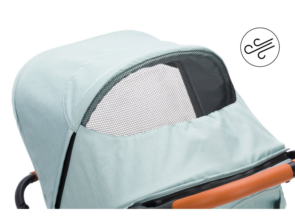 - Stříška: Rozšiřitelná s průzorem a integrovanou přihrádkou