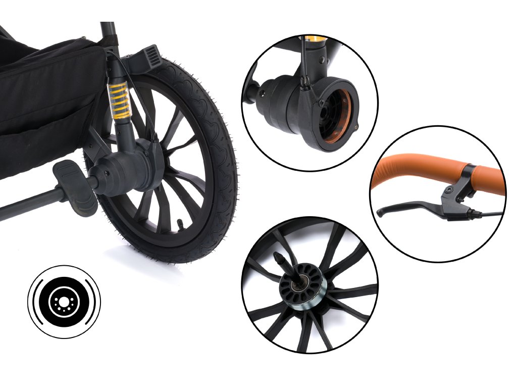 - Brzdy: Speciální vnitřní špalíková brzda a přídavná nožní brzda