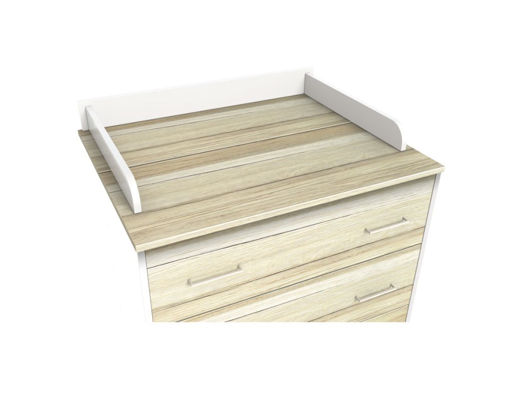 Zvětšuje horní plochu komody Némó Caravelle a zabraňuje posunutí přebalovací podložky mimo ni. Rozměr místa pro přebalovací podložku š.80 x hl.70 cm.
