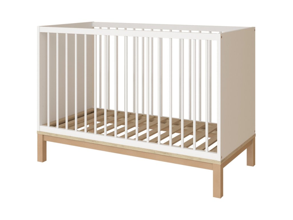 Postýlka 120 x 60 cm je prostorově nenáročná, ale díky svým velkorysým vnitřním rozměrům je použitelná až do 2-3 let. Výškově nastavitelný rošt (3 polohy) přispůsobí postýlku vývoji dítěte. Jak roste, umístíte rošt stále níž a tím zajistite, že spánek dítěte bude vždy maximálně pohodlný a bezpečný. Z bočnice lze vyjmout 3 šprušle, takže když je dítě starší, může samostatně vstupovat a vystupovat z postýlky. Rošt je součástí postýlky.