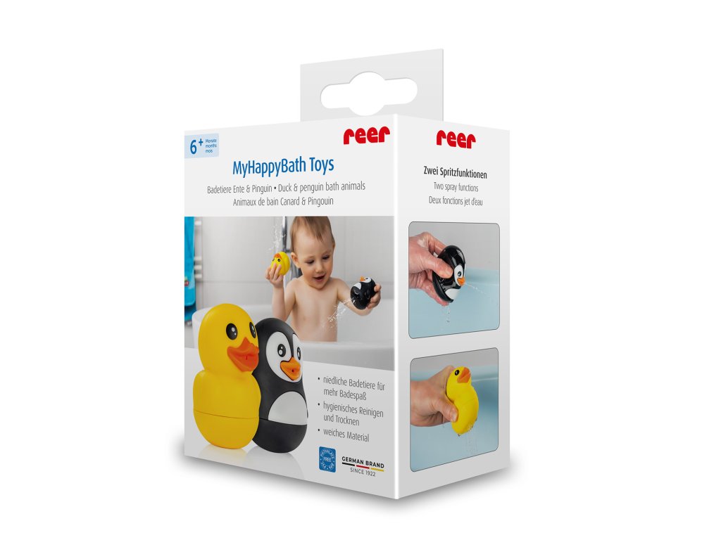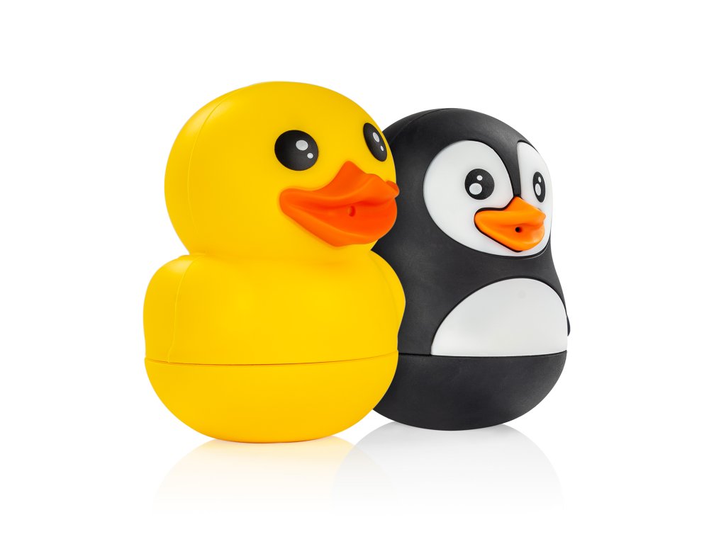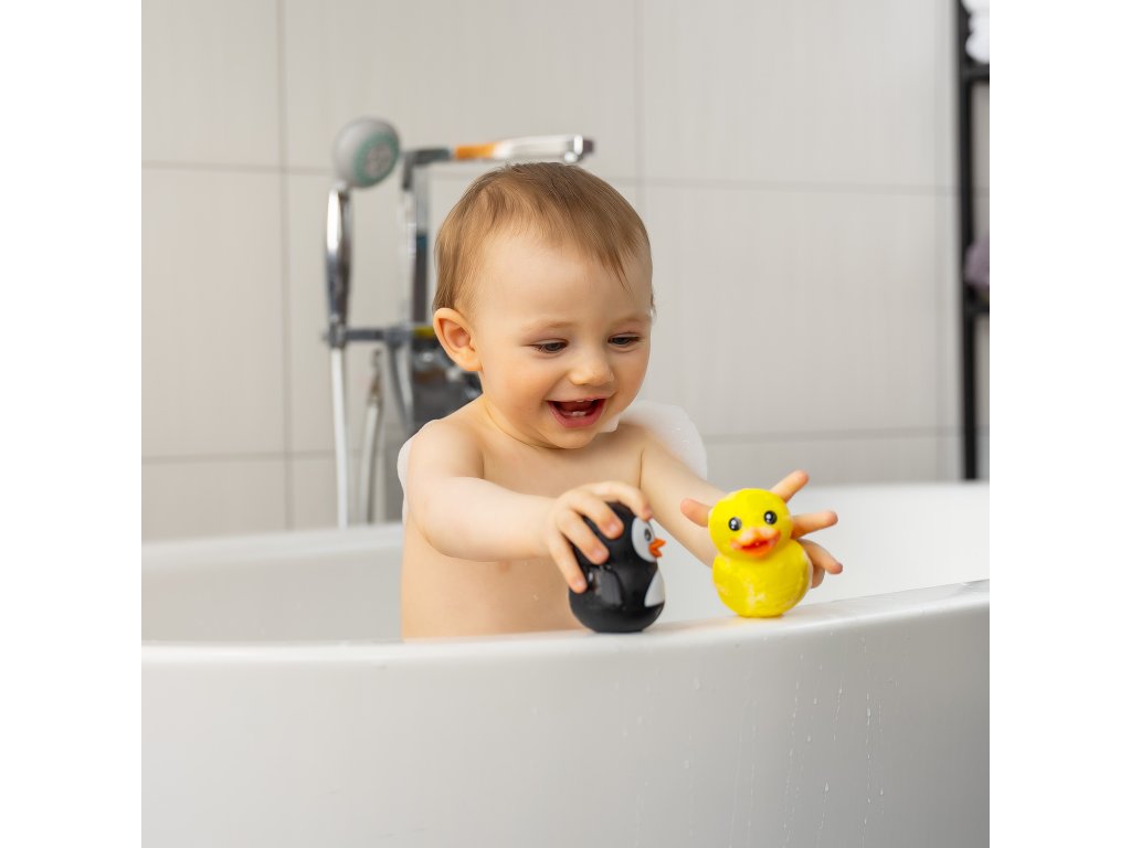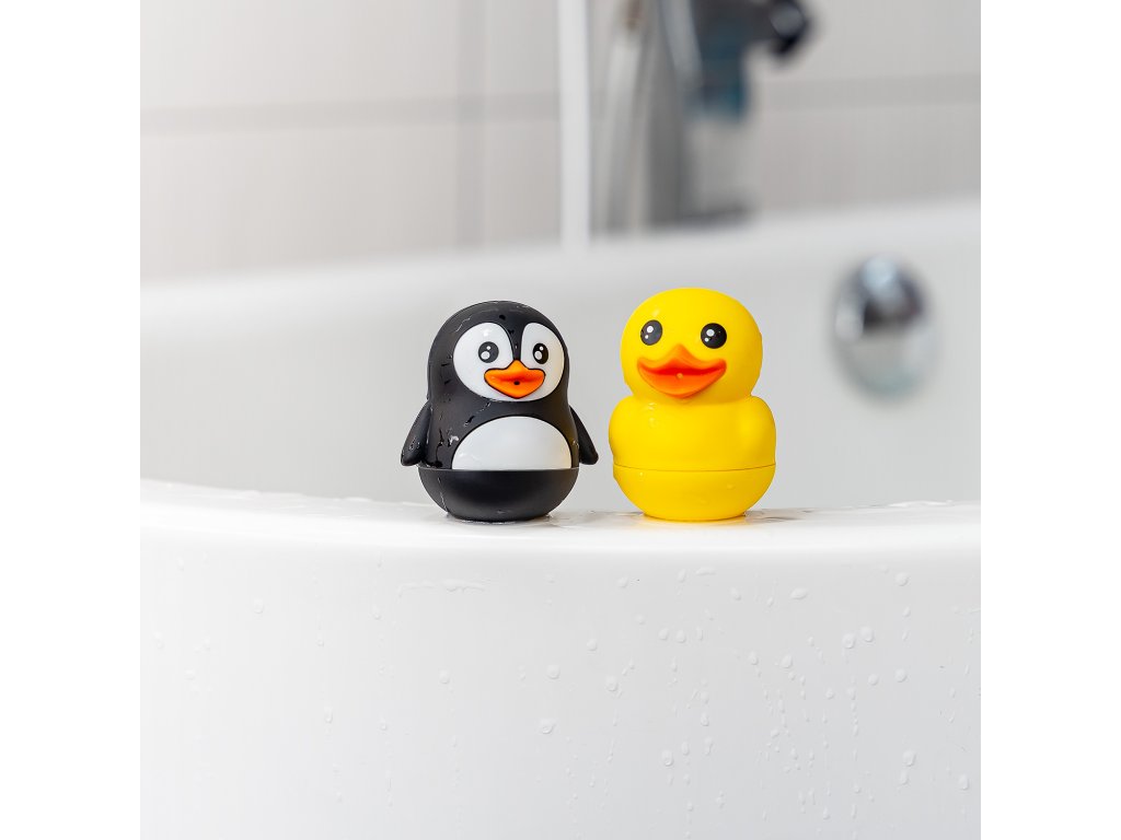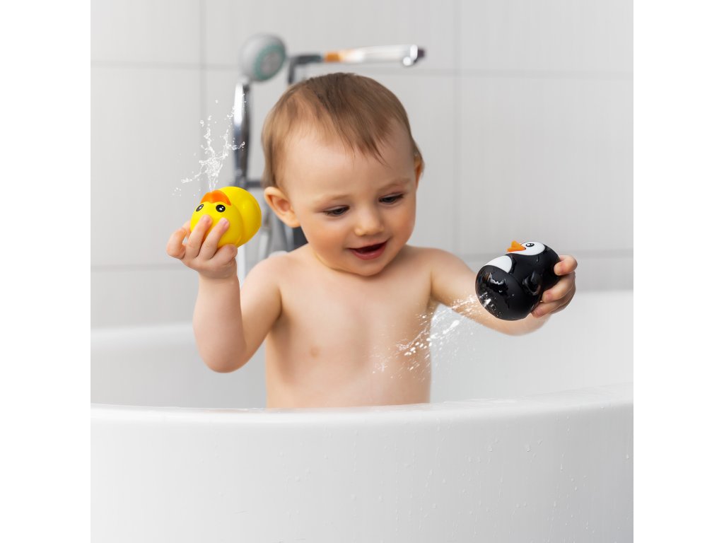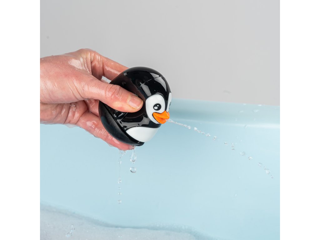 Ideální pro cákání se ve vodě, 2 způsoby stříkání vody: ze zobáku nebo z těla. Části lze rozebrat pro snadné čištění a hygienické sušení. Materiál: silikon, obsah: 2 kusy (1x kačenka, 1x tučňák).