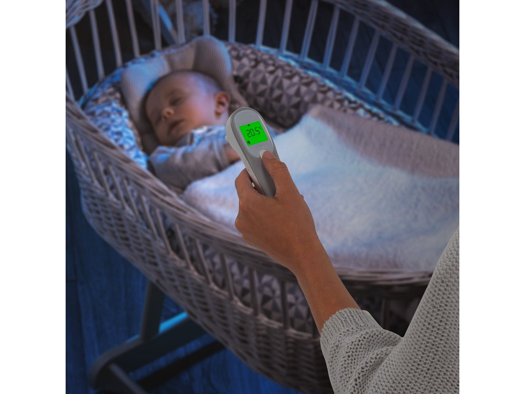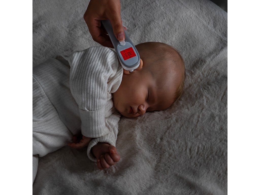 Teploměr je vybaven třístupňovým vizuálním alarmem horečky. Na první pohled tak vidíte, zda má vaše dítě vysokou teplotu nebo dokonce horečku. Za normální teploty displej svítí zeleně. V případě vysoké teploty displej svítí oranžově. Pokud teploměr naměří horečku, teploměr vás informuje akustickým varováním a signálním červeným displejem. Pro miminka platí pro normální teplotu, zvýšenou teplotu a horečku jiné limity než pro kojence nebo dospělé. Teploměr je tak vybaven speciálním dětským režimem. Pokud je toto aktivováno, je alarm horečky založen na limitních hodnotách specifických pro věk dítěte, a to ve věku od 0 do 36 měsíců.