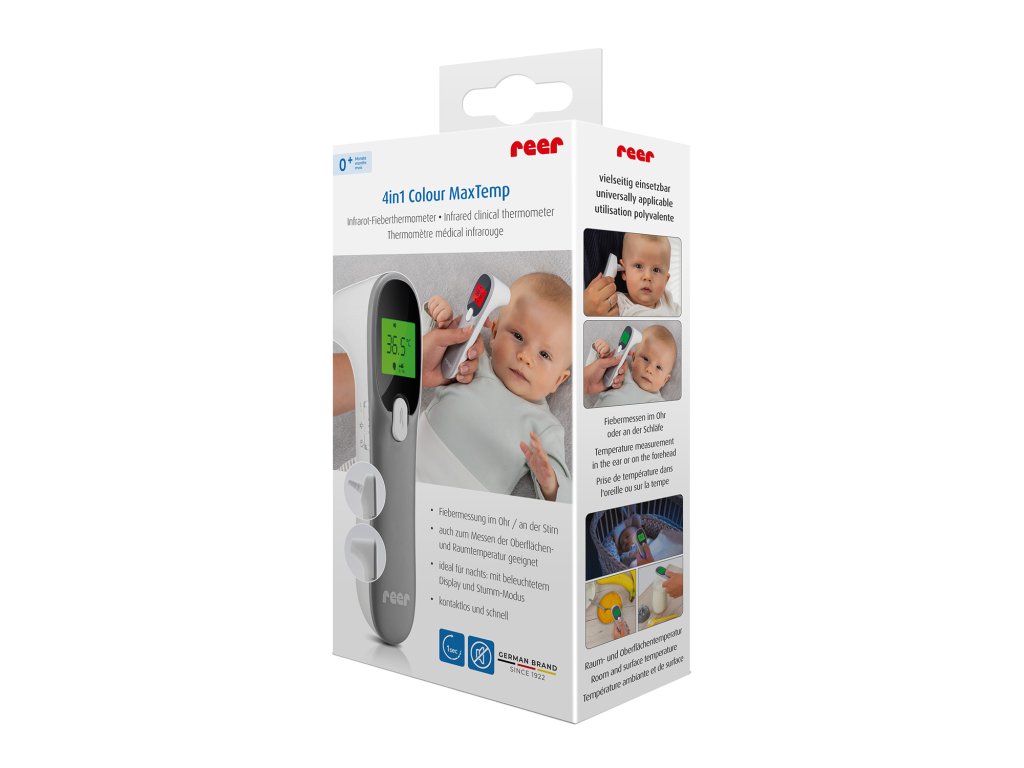 S infračerveným teploměrem Color MaxTemp 4v1 můžete rychle a snadno zkontrolovat teplotu vašeho miminka nebo dítěte.