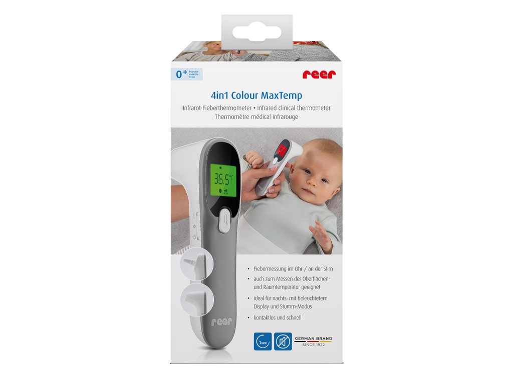 Měření teploty rektálně je pro malé děti většinou nepříjemné. Teploměr Color MaxTemp 4v1 nabízí 2 možnosti měření, a to na spánku nebo v uchu. Díky infračervené technologii je měření teploty rychlé a bezbolestné během jedné sekundy.