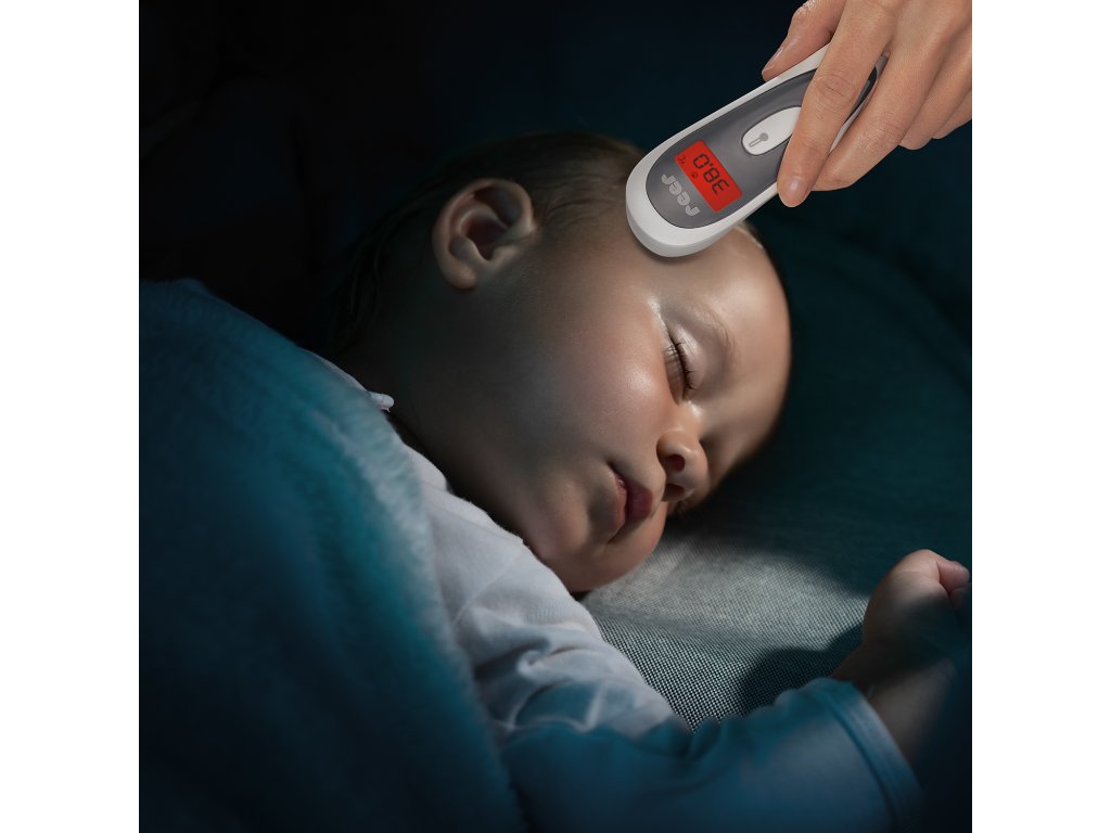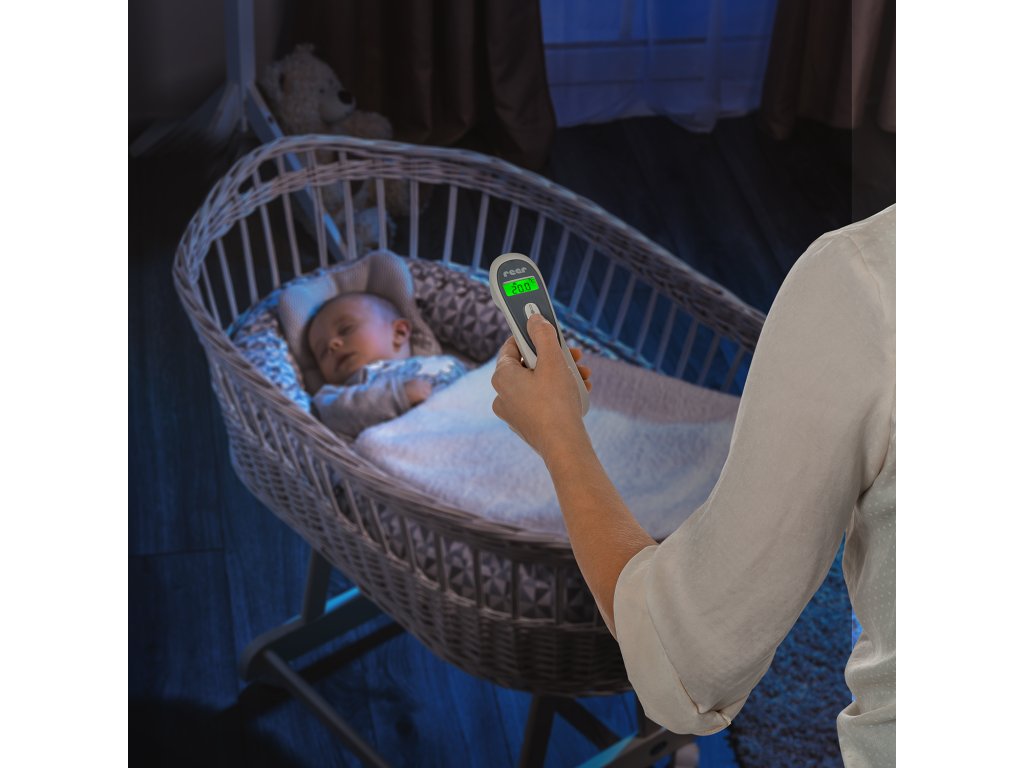 Aby bylo možné nepřetržitě sledovat průběh teploty, nelze se vyhnout nočním měřením. Protože však dobrý noční spánek je velmi důležitý pro rychlé zotavení, neměli byste své dítě pokud možno budit v noci. Ideální společníci pro nekomplikovanou kontrolu teploty v noci jsou: bezkontaktní měření, podsvícený displej, optický alarm horečky a zvukový signál, který lze vypnout.