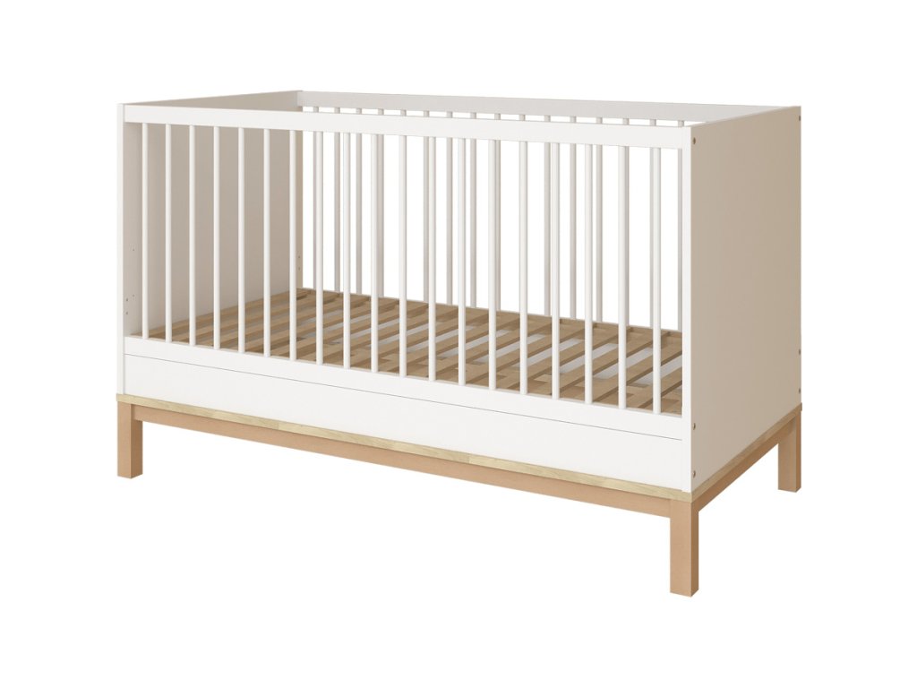 Provedení: Bočnice tvoří kulaté šprušle z masívu (buk). Z jedné bočnice lze vyjmout 3 lamely, takže když je dítě starší, může samostatně vstupovat a vystupovat z postýlky.